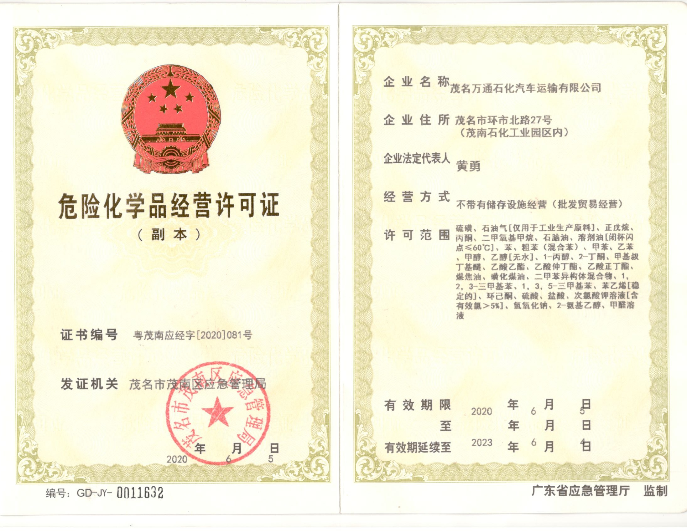 危險化學品經營許可證